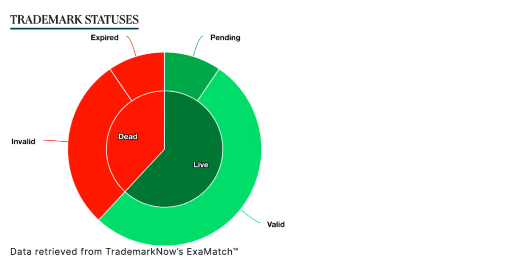 At the time of writing, our business intelligence tool ExaMatch™ reveals 16 trademark applications filed in Class 25 (Clothing) — just one of which is valid. 43.8% of these applications include the product description “Masquerade costumes”.