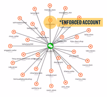 The network is comprised of multiple Shopee storefronts all connected by one single WeChat account – without using Network Analysis technology, these storefronts would have been encountered one by one without the link ever being made, removing the possibility for coordinated enforcement causing max disruption.