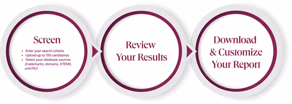 CORSEARCH Pharma-Check is easy-to-use. To run your preliminary knockout search you follow a simple three-step approach.