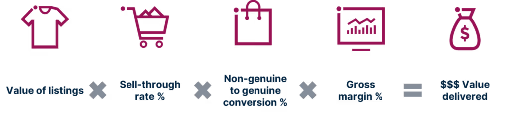 Superdry starts with the volume of illegitimate listings before applying several factors to create a credible ROI figure.
