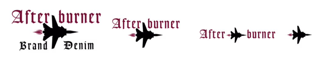 The design or marketing agency has proposed using a stylized jet fighter with a gothic font as a combined mark and has delivered four designs to be used responsively on the company’s products and marketing, as shown.